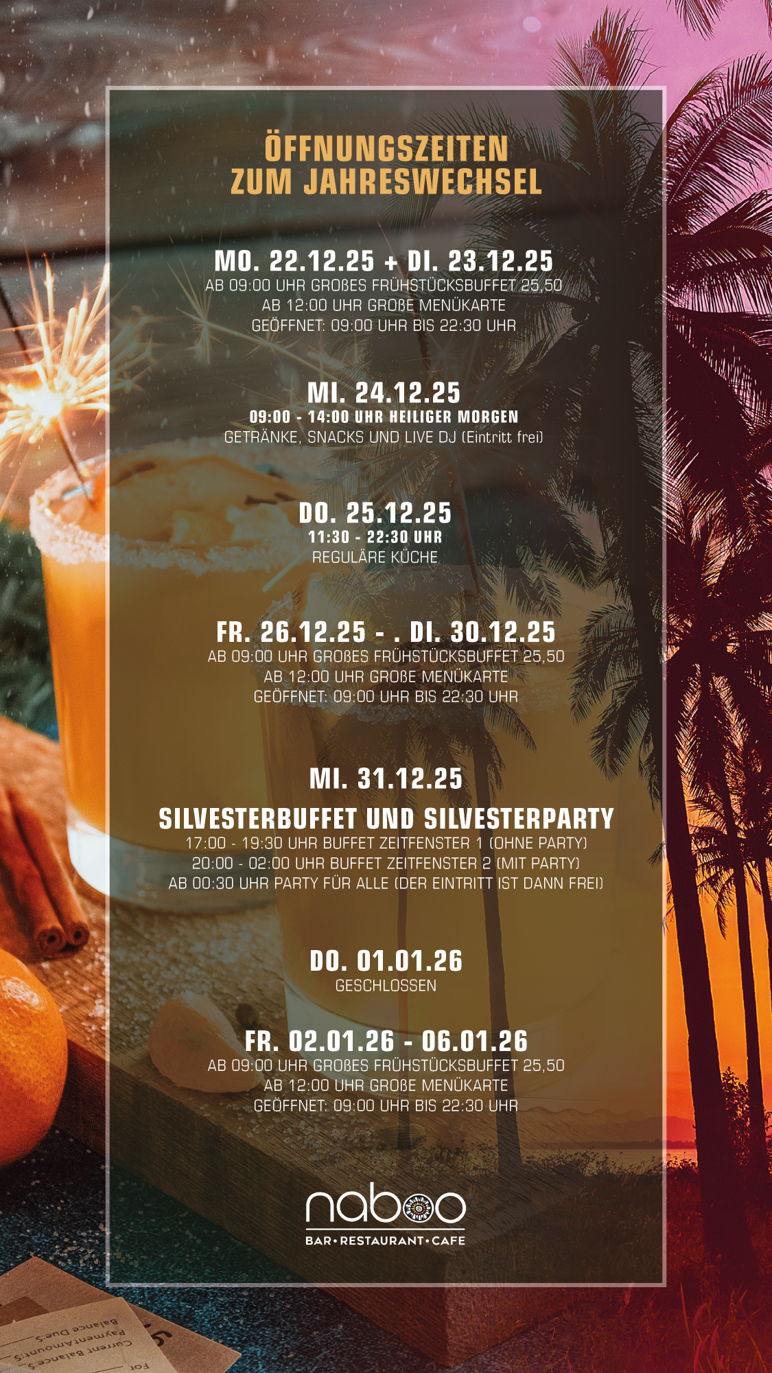 Samstag: 09:00 Uhr - 01:00 Uhr
